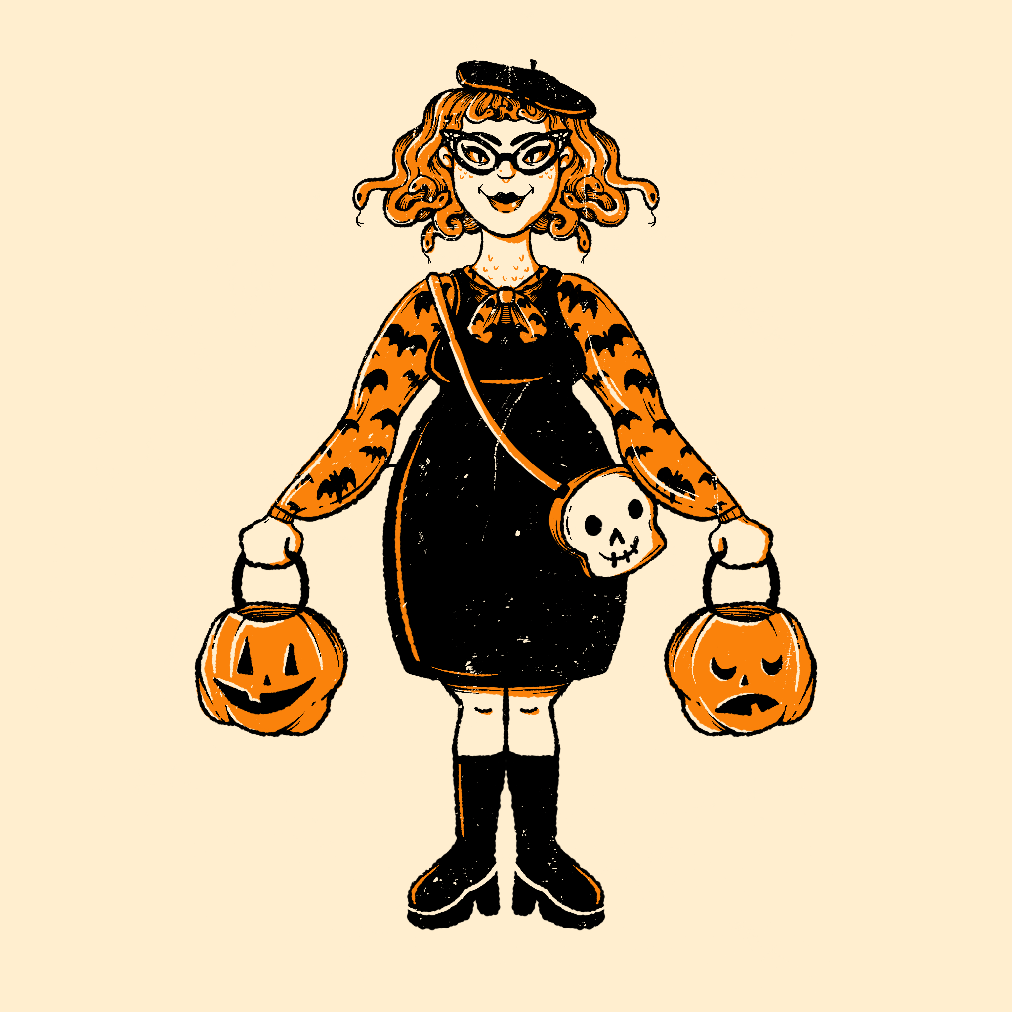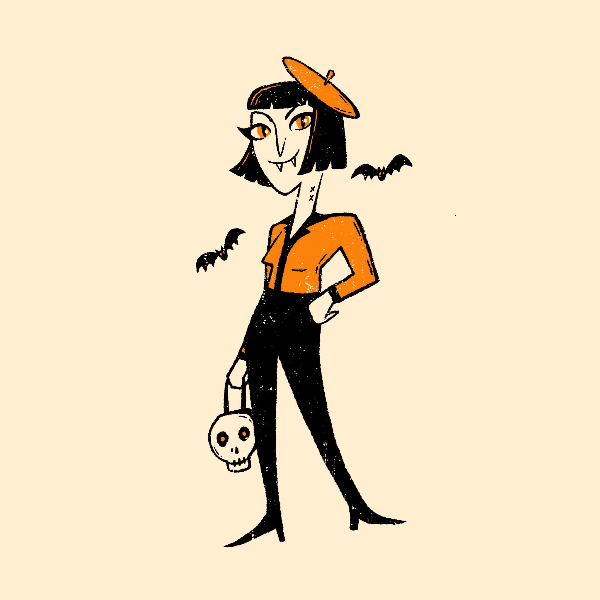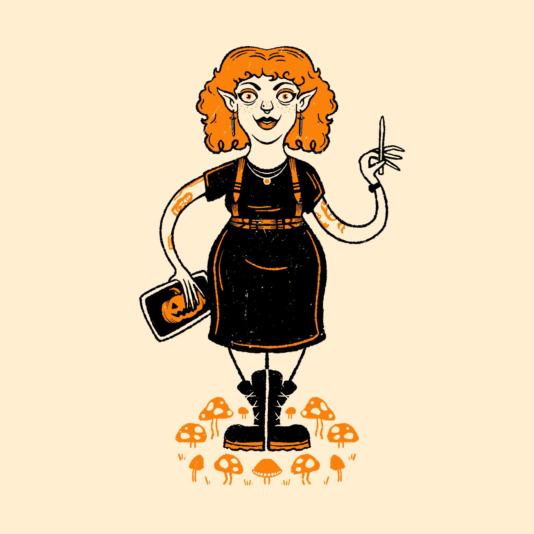 Illustrations from the Mab's Drawlloween Club Instagram art challenge. Each day in the month of October participants draw an image inspired by that day's prompt, similar to Inktober, Drawlloween, and other monthly art challenges. While any medium can be used, I wanted to attempt to create a series of character based drawings using hard lines and only three colors: black, orange, and cream. I've utilized this style and palette over the past five years, creating a multitude of themed illustrations.