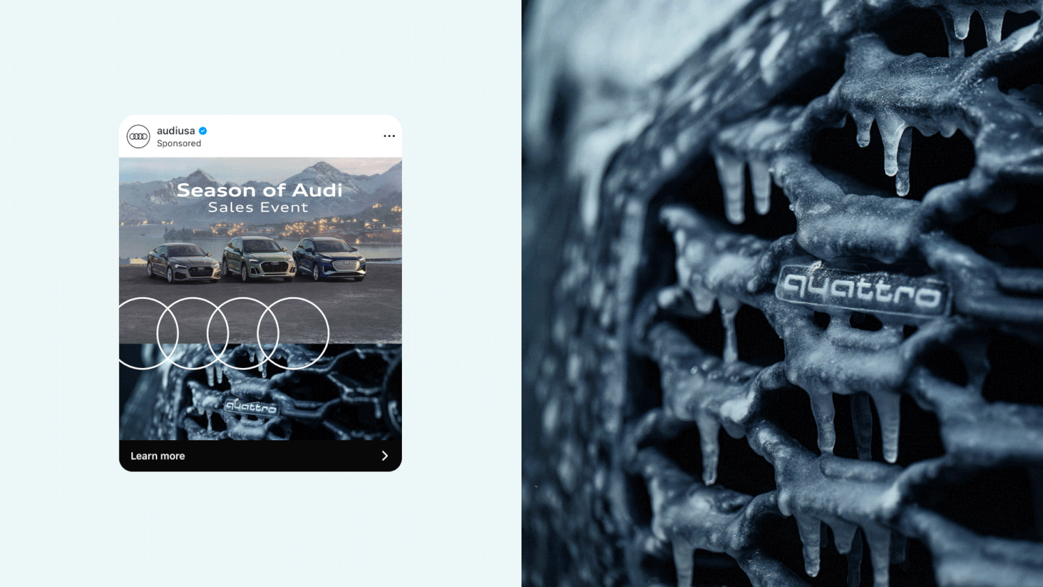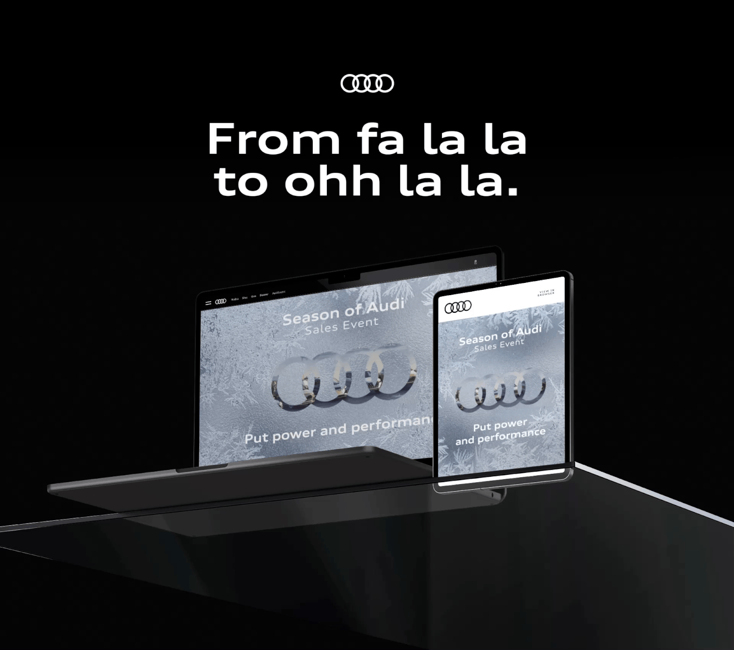 Every year the Audi brand celebrates the holidays with a season of savings. Carefully weaving the intersection of luxury and savings can be tricky (pun intended). But this campaign design system achieves the level of excellence expected of the brand, while adding a bit of excitement. A mix of CGI, stock and pre-shot photos are seamless combined to tell a cohesive visual story across a number of channels.